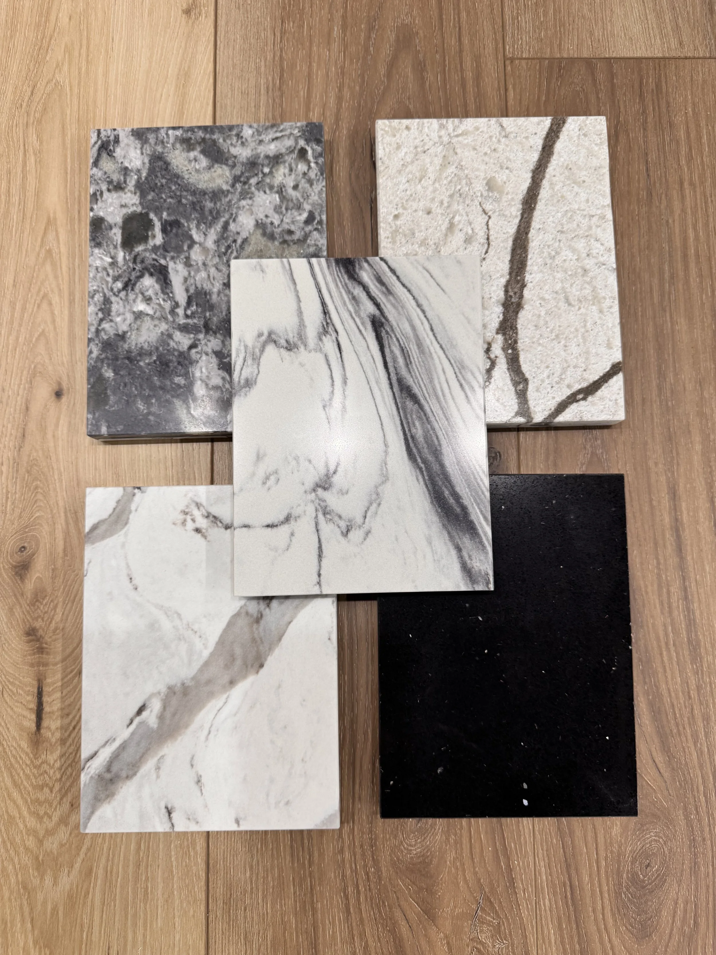 Showroom Experience — Touch and compare real material samples before you commit. Seeing countertops in real light alongside flooring and tile options makes all the difference.